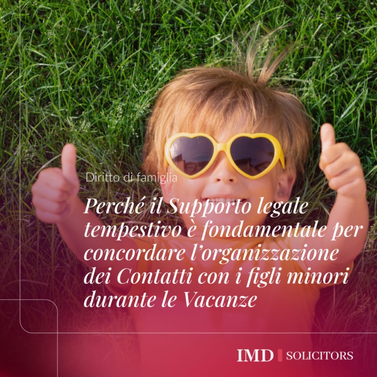 Organizzare i contatti con i figli durante le vacanze scolastiche è un problema comune per i genitori separati. Presso IMD Solicitors LLP, supportiamo regolarmente i clienti nel raggiungere accordi idonei e giuridicamente sicuri per le vacanze tramite corrispondenza e negoziazione, spesso senza necessità di ricorrere in giudizio.