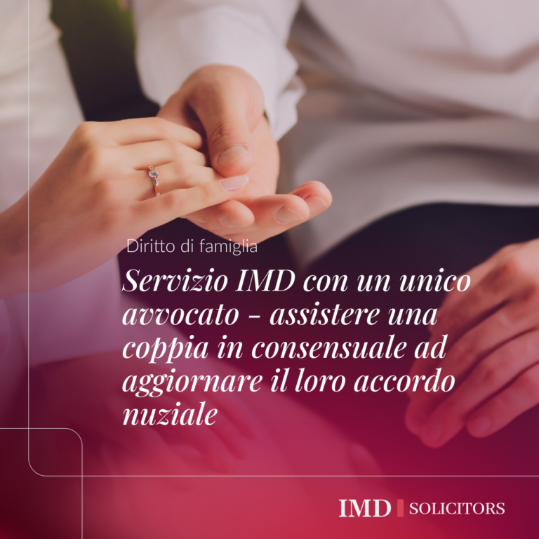 Servizio IMD con un unico avvocato – assistere una coppia in consensuale ad aggiornare il loro accordo nuziale